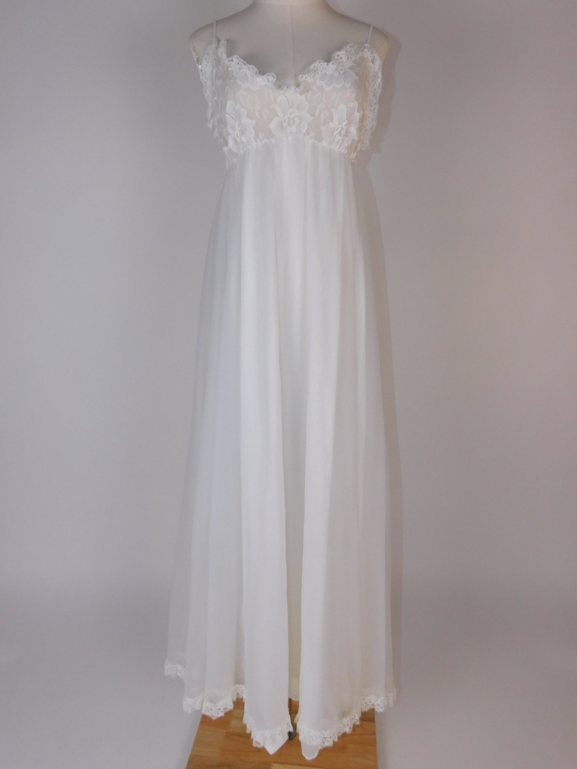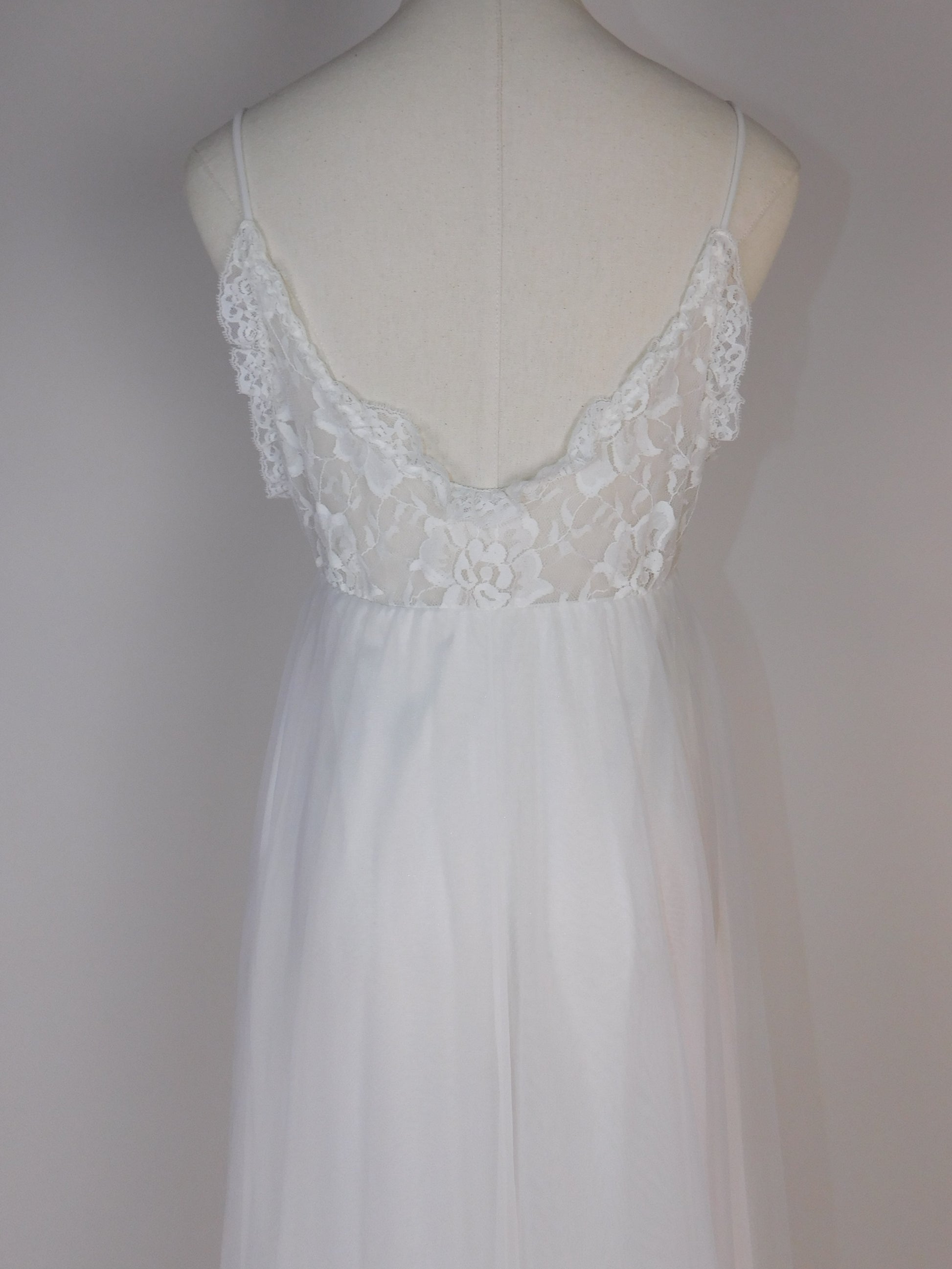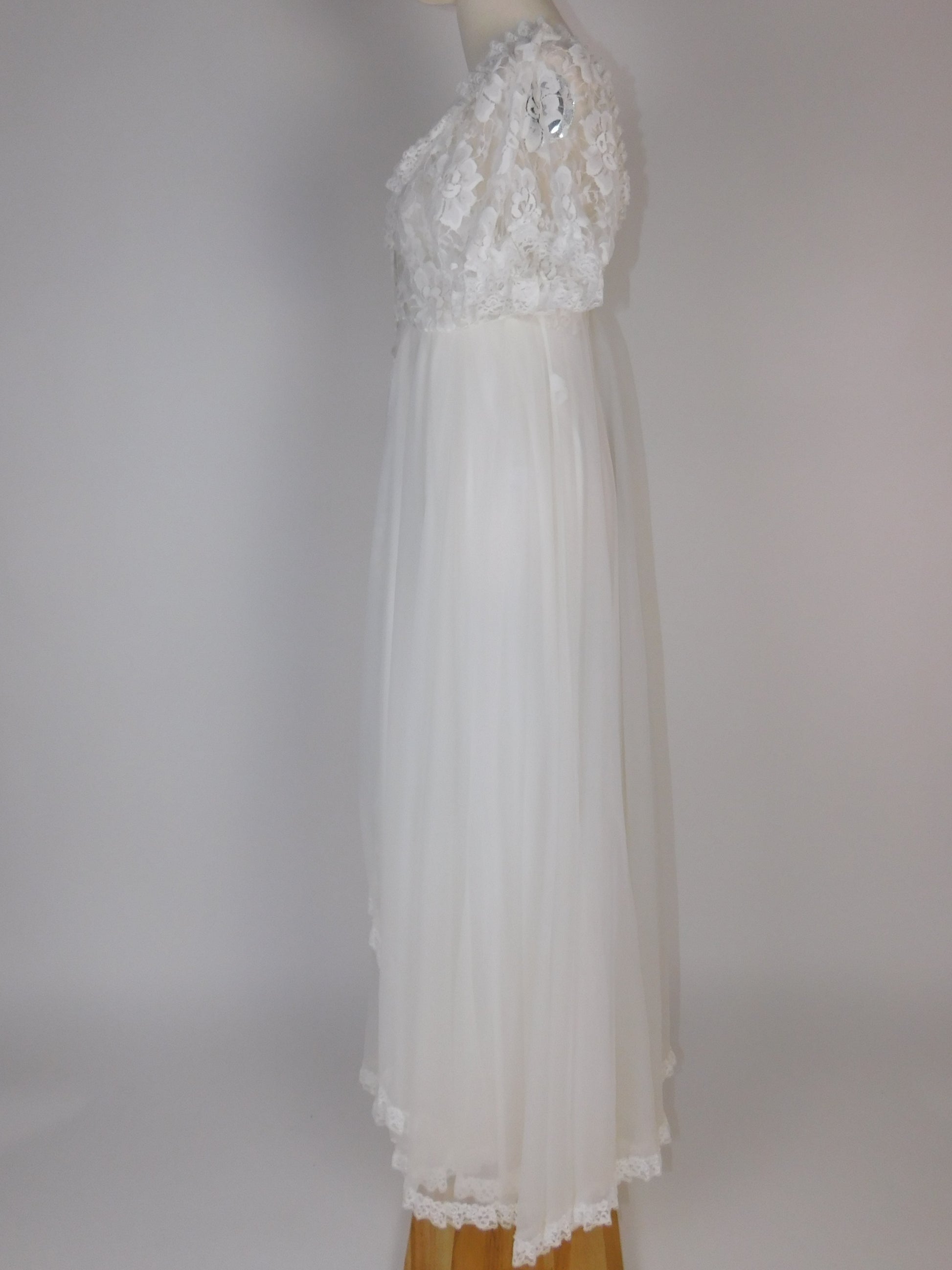 Vintage 1970s Bridal Peignoir Set in Sheer Chiffon and Lace with Removable Robe