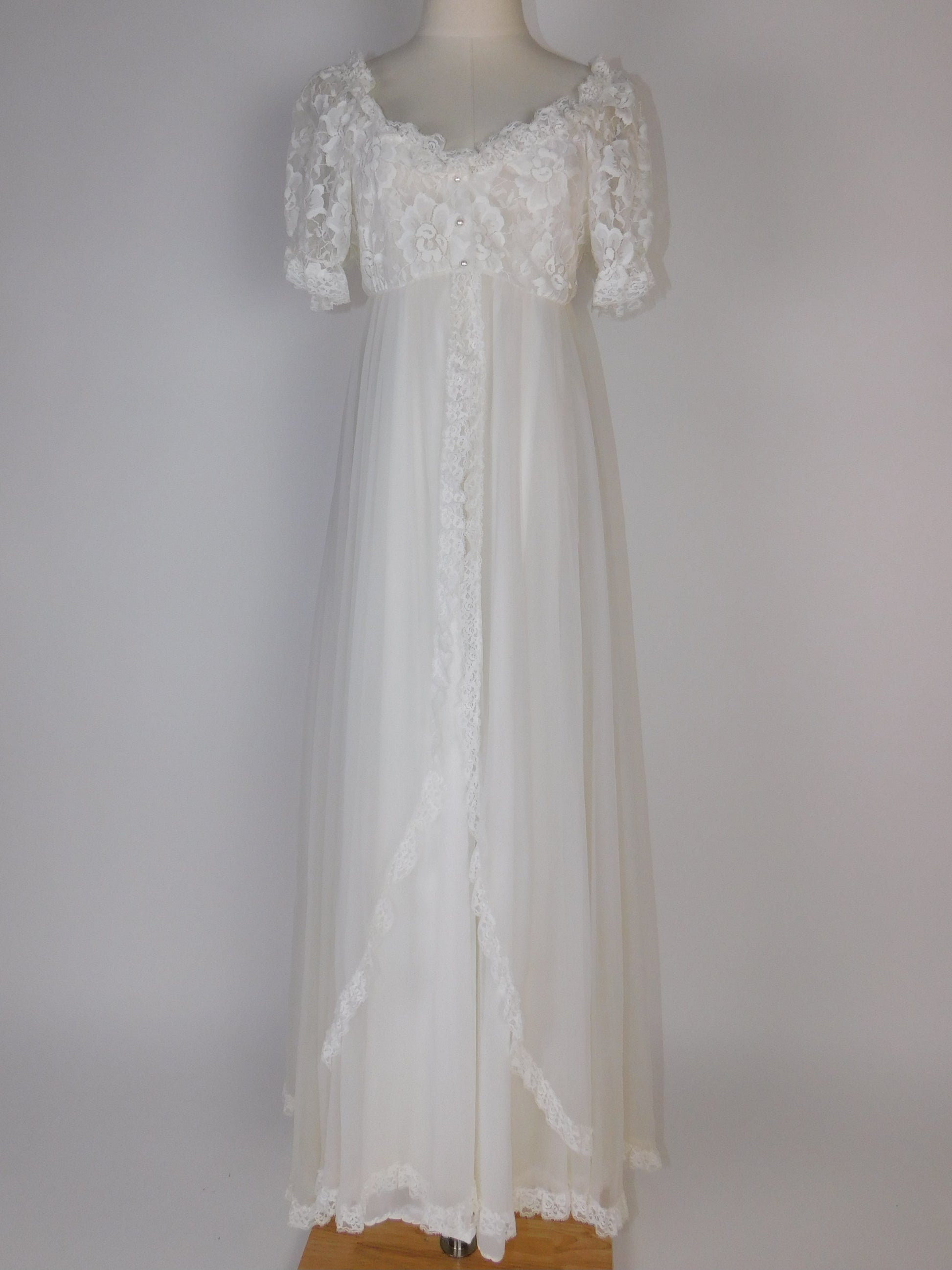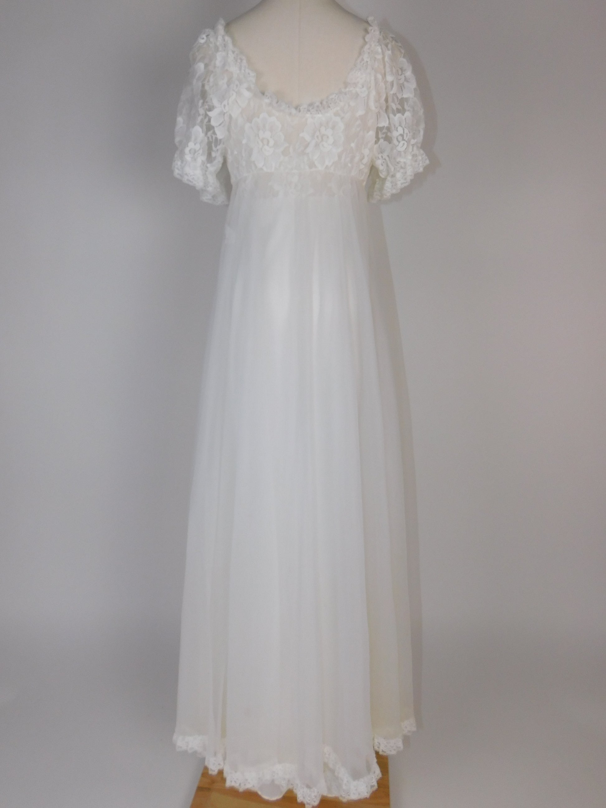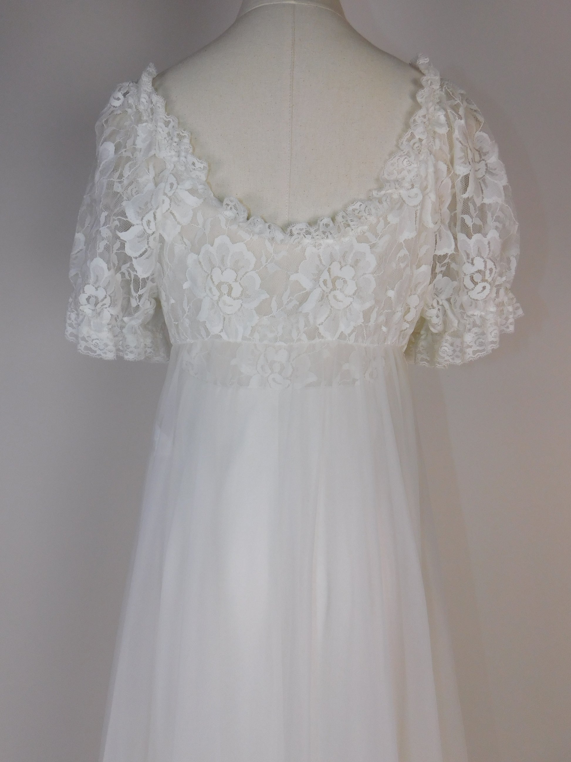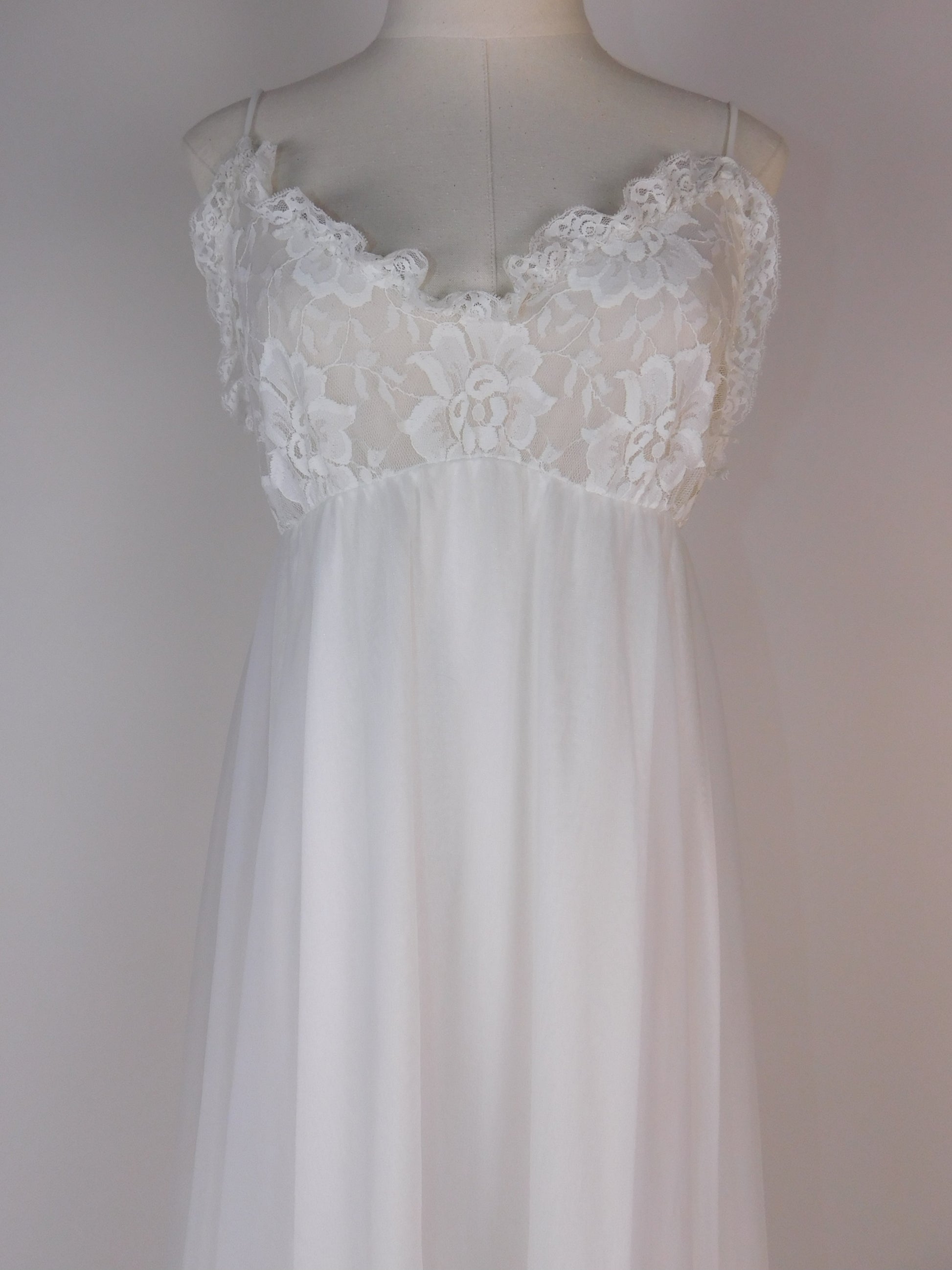 Vintage 1970s Bridal Peignoir Set in Sheer Chiffon and Lace with Removable Robe